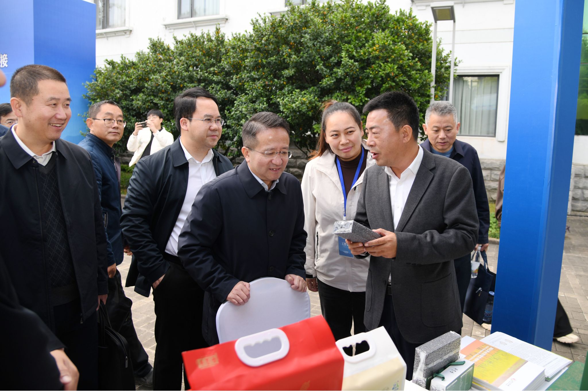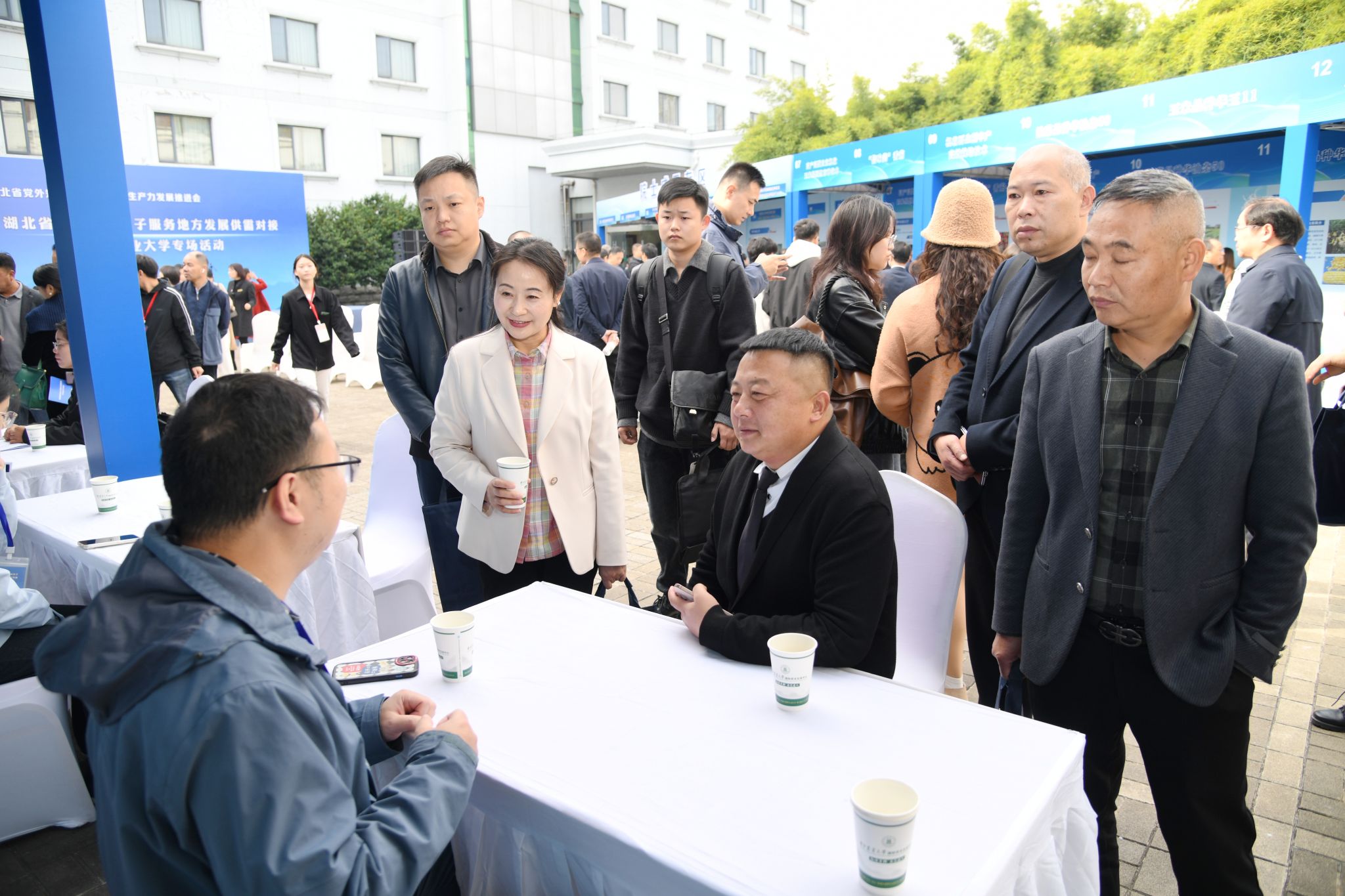 ▲会前,湖北省委常委、统战部部长宁咏到全省党外知识分子服务地方发展供需对接学校专场活动现场调研指导(通讯员 侯国涛 摄)
