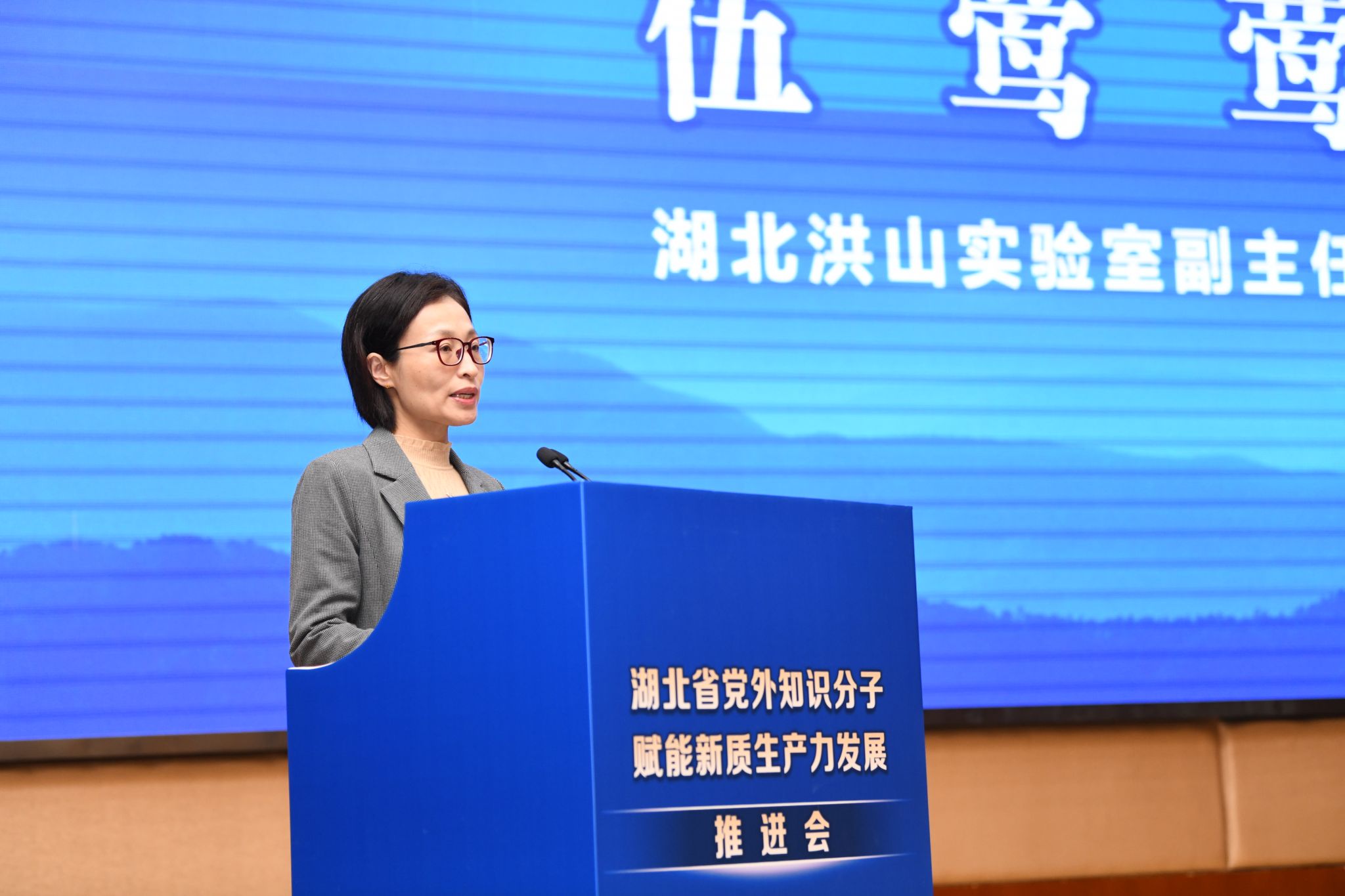 ▲湖北洪山实验室建设委员会办公室主任伍莺莺作交流发言(记者 徐行 摄)